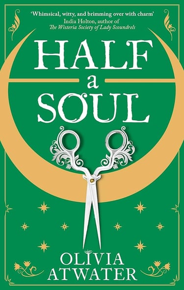 What does it mean to have Half a Soul. Or should I say what does it mean to have a soul at all. Olivia Atwater's Half a Soul has quickly become one of my favourite books and has made me fall in love with reading once again. In this book, we follow Dora who has lived half her life living with part of her soul missing. Growing up unable to feel strong emotions and follow social norms lead her to be witty, blunt with a hint low self esteem.